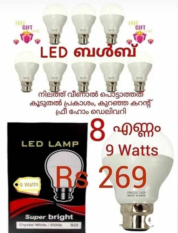 9 വാട്ട്സ് ന്റെ LED ബൾബ് 8 എണ്ണം 269 രൂപക്ക്*