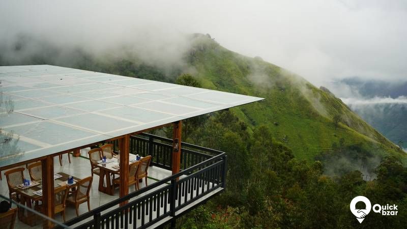 Premium Suite features wooden furniture, king-sized beds, balcony and bay windows offering panoramic views of mountains.