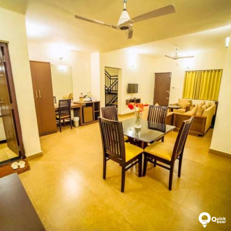 family villas are synonymous with luxury and serenity. A family villa spans an expansive 800 square feet. Each villa has 2 spacious bedrooms, making it the perfect abode for a family of six members. The welcoming and elegant living room instills a feeling of warmth and comfort. There is a sit-out area, enticing you to banter with your loved ones in the quietude of evenings.
