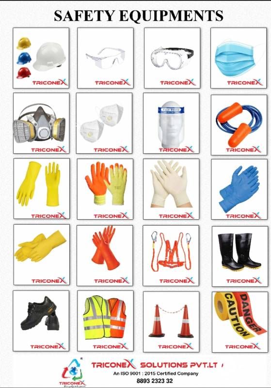 Gloves, Helmet, Shoes, Boots, Coveralls, Mask, Earplugs, Sheild, Belt, Harness Jacket....