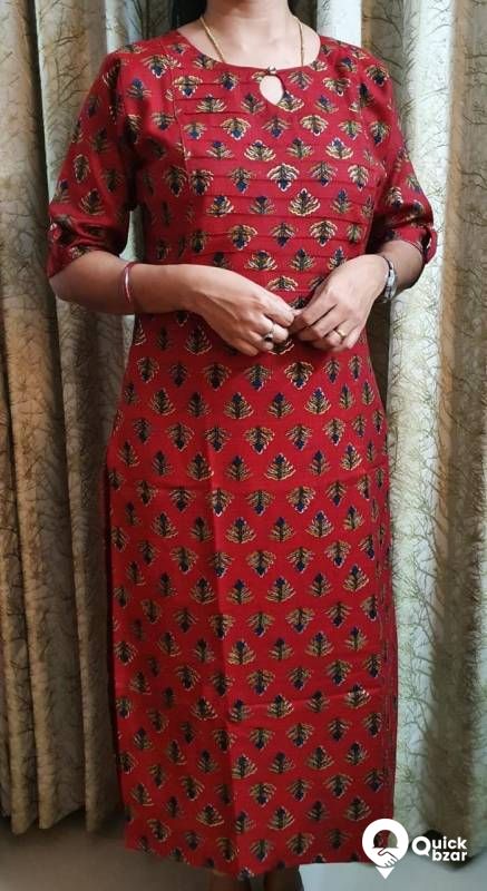 Beautiful Wrinkle mixed cotton side slitted kurti with Pintuck yoke with lining inside