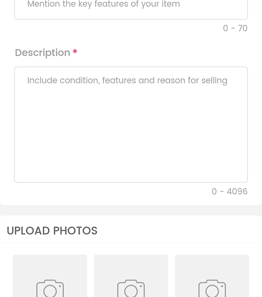* Ads for buying products/services like "Looking for iPhone", "Looking for a rental house" etc are strictly prohibited.